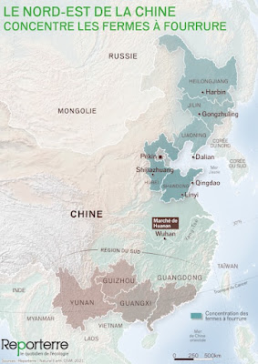 L’élevage intensif de visons et d’autres animaux à fourrure ne cesse pas en Chine. Les fermes sont pourtant suspectées d’avoir joué le rôle de chaînon manquant dans l’émergence de la pandémie. Une thèse accréditée par un rapport de l’Organisation mondiale de la santé et par de nombreux scientifiques.
